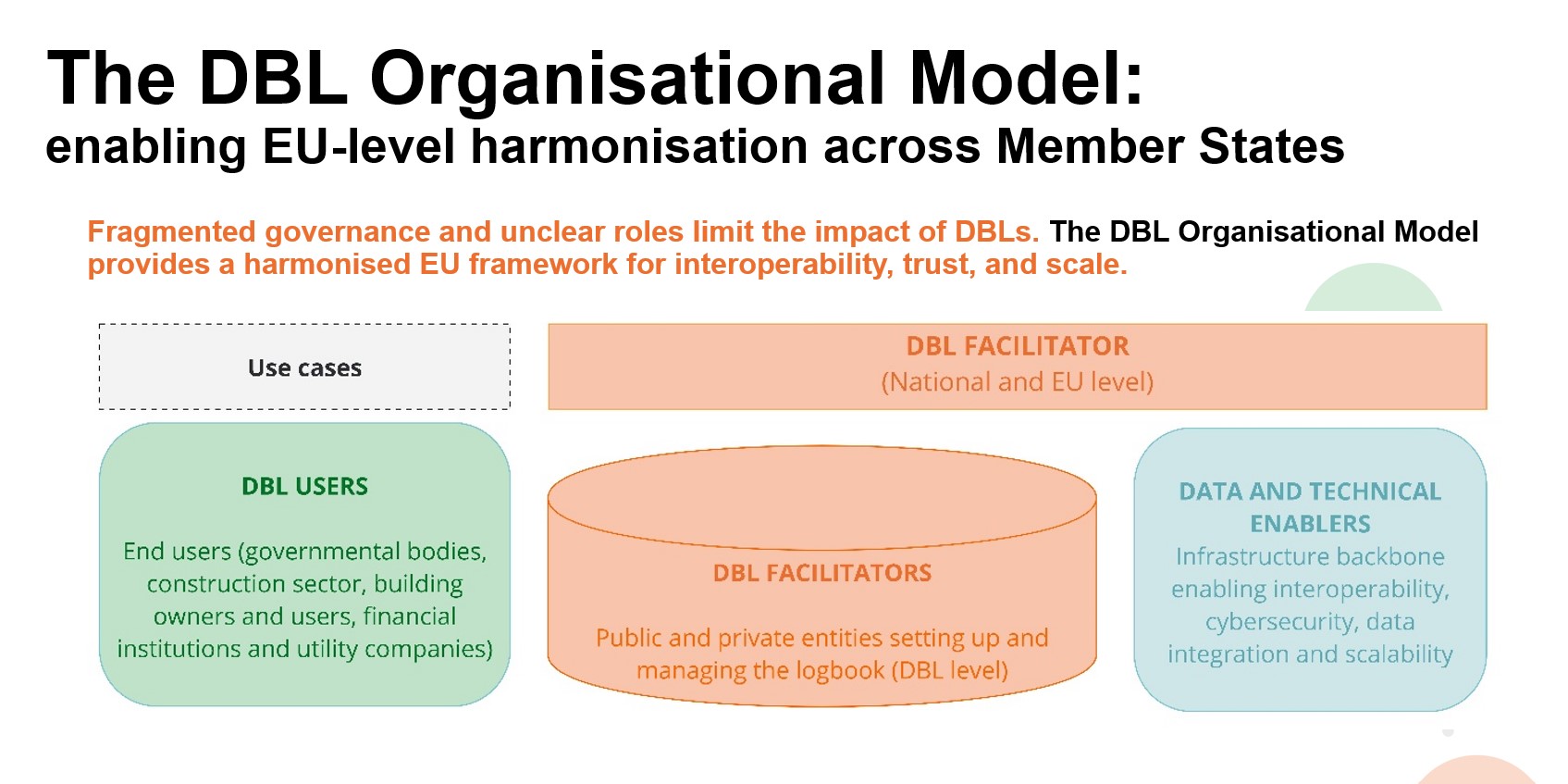 Through clearer governance, aligned standards, and trusted data-sharing structures, the model helps position DBLs as a strategic EU policy tool that can support interoperability, innovation, and investment across Europe’s built environment.